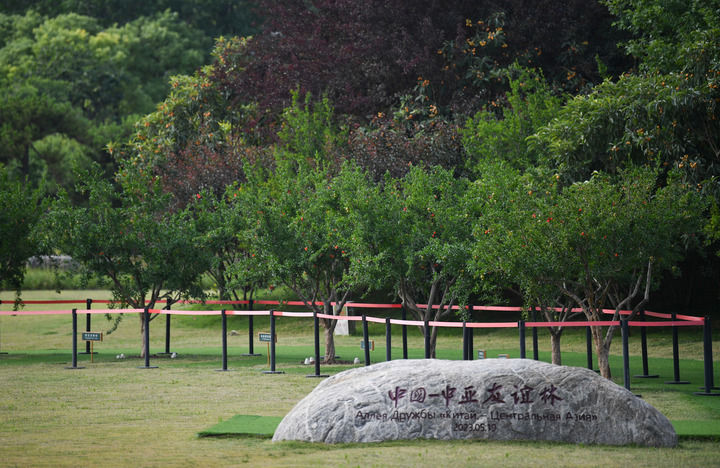 这是2025年5月29日拍摄的位于陕西西安的中国-中亚友谊林。新华社记者 张博文 摄 “在长期实践中,我们探索形成了‘互尊、互信、互利、互助,以高质量发展推进共同现代化’的‘中国-中亚精神’。”习近平主席深刻阐释“中国-中亚精神”的丰富内涵,揭示中国同中亚携手合作的时代意义。 大国外交,在文明传承中汲取前行智慧,于历史奔流中锚定时代航标。 “丝绸之路精神”“中国-中亚精神”“中法建交精神”“中非友好合作精神”“上海精神”“金砖精神”……中国外交倡导和践行的每一种精神,都蕴含着关照现实的深邃思索,融汇为贯古通今的时代表达。