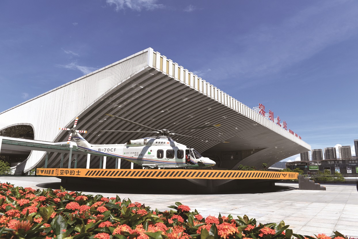 6月28日,直升机在深圳北站旁的停机坪等待起飞。