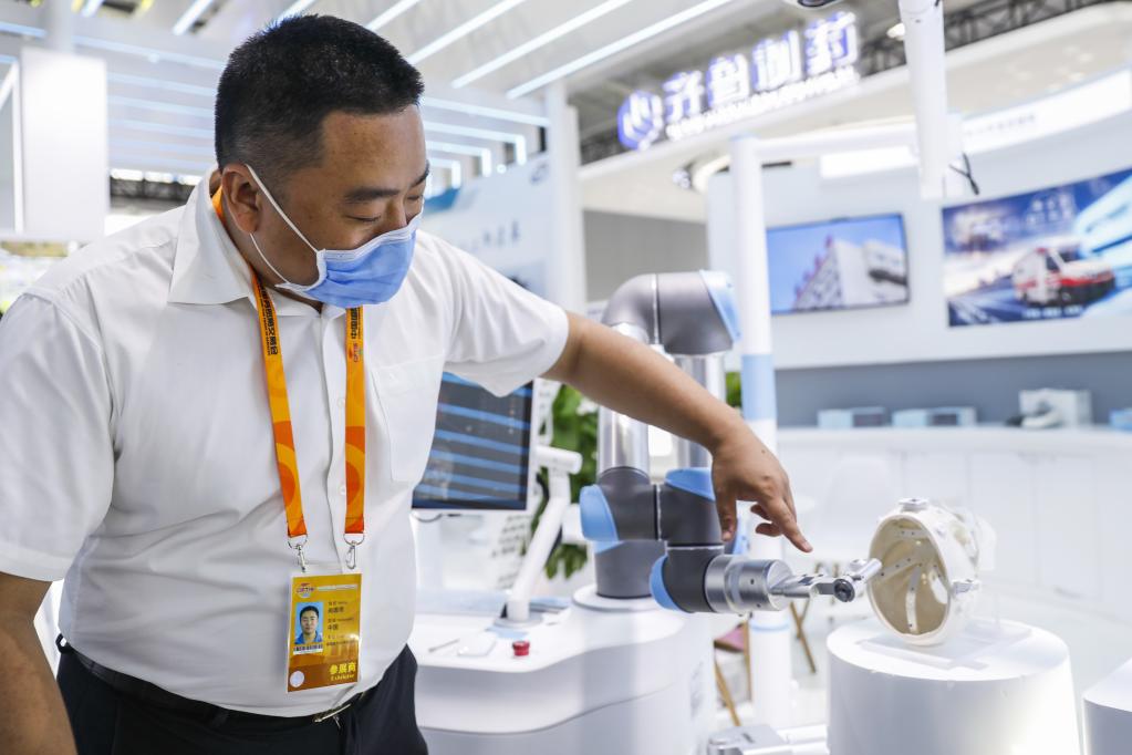 9月5日,在服贸会首钢园区健康卫生服务专题展北京宣武医院展台,工作人员在介绍神经外科手术机器人。(新华社记者张玉薇摄) 随着数字技术与服务贸易加速融合,数字贸易正成为服贸领域新的增长点。商务部数据显示,“十三五”时期,我国数字贸易增长47.4%,占服务贸易的比重从30.6%增长至44.5%。 中国服务贸易开放水平也在有序提升。中国连续7年保持服务贸易世界第二大国地位,与世界近240个国家和地区有服务贸易往来;连续4年缩减外资准入负面清单,在原有加入世贸组织承诺开放100个服务部门的基础上,承诺新增22个服务部门。 梁国勇认为,中国经济在数字化发展方面走在了世界前列,诞生了一大批世界级的企业和企业家。数字经济成为中国经济中最具活力的组成部分之一,跨境电商也成为国际贸易新的增长点。