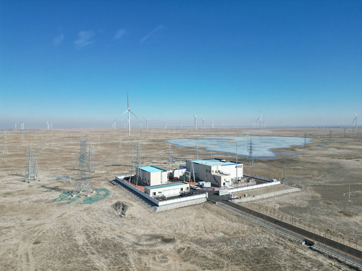2023年3月8日拍摄的吉林省通榆县华能什花道风电场(无人机照片)。新华社记者 姜明明 摄 华能吉林发电有限公司新能源分公司的风电场里,110米高的风机叶片持续转动。几十公里外的白城市通榆县,正在打造风电全产业链“一站式采购”城市,大到风机叶片、机舱罩、塔筒,小到螺丝锚栓,都可以找到。风电产业带动这个小县城的工业增速位居全省前列。 吉林“陆上风光三峡”工程稳步推进,新能源装机容量占吉林省装机总量的57%。今年1至11月份,吉林新能源累计完成发电量同比增长超过36%。“长春市作为供电量占全省40.5%的省会城市,成为新能源消纳的主体。”国网长春供电公司电力调度控制中心主任焦明曦说。