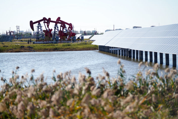 2023年9月19日,在黑龙江大庆油田星火水面光伏电站,电站设施与附近的抽油机相映成趣。新华社记者 王建威 摄 清洁能源让石油城大庆焕发新生。“像抓油气产量一样抓新能源”——大庆油田成立新能源工作领导小组,2023年以来新能源项目累计发电35695.43万千瓦时。截至10月底,黑龙江省新能源和可再生能源装机规模达2286万千瓦,占全省装机总量的50.2%。