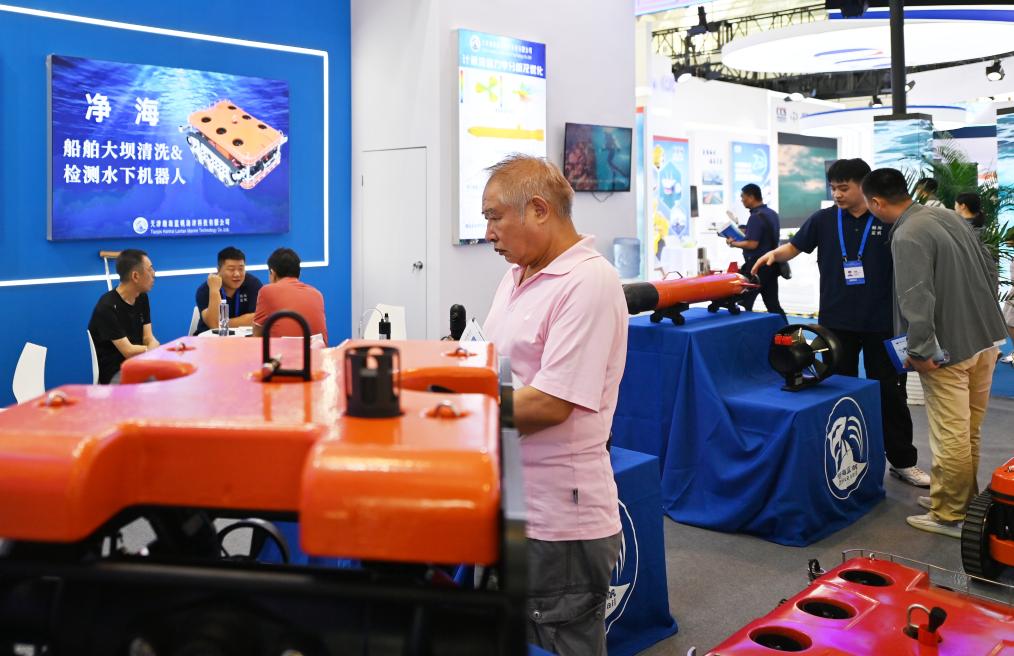 7月11日,与会者在2024天津国际航运产业博览会上了解水下机器人。新华社记者 李然 摄 新华社天津7月14日电 题:中国临港经济发展向新发力 新华社记者梁姊、隋福毅 一台往复式天然气压缩机的零件四散在VR培训教室中。戴上VR头盔,操作手柄,重达几公斤的零部件不仅可以“拿在手里”观察,文字介绍和操作注意事项也会浮现在视线中央。 这个仿佛游戏外设的VR装备,是海洋石油工程股份有限公司带到2024天津国际航运产业博览会上的展品之一。“这套设备能够有效弥补专业技术人员缺乏的短板,保障设备长期稳定运行。”海油工程特种设备分公司产品孵化制造中心信息化管理室主任祁尧飞说。 在2024天津国际航运产业博览会上,从海工装备制造智能工厂到各类“大国重器”,再到进口海鲜、新鲜食材……众多展商带来的丰富展品展示了中国临港经济向新发力的丰富成果。