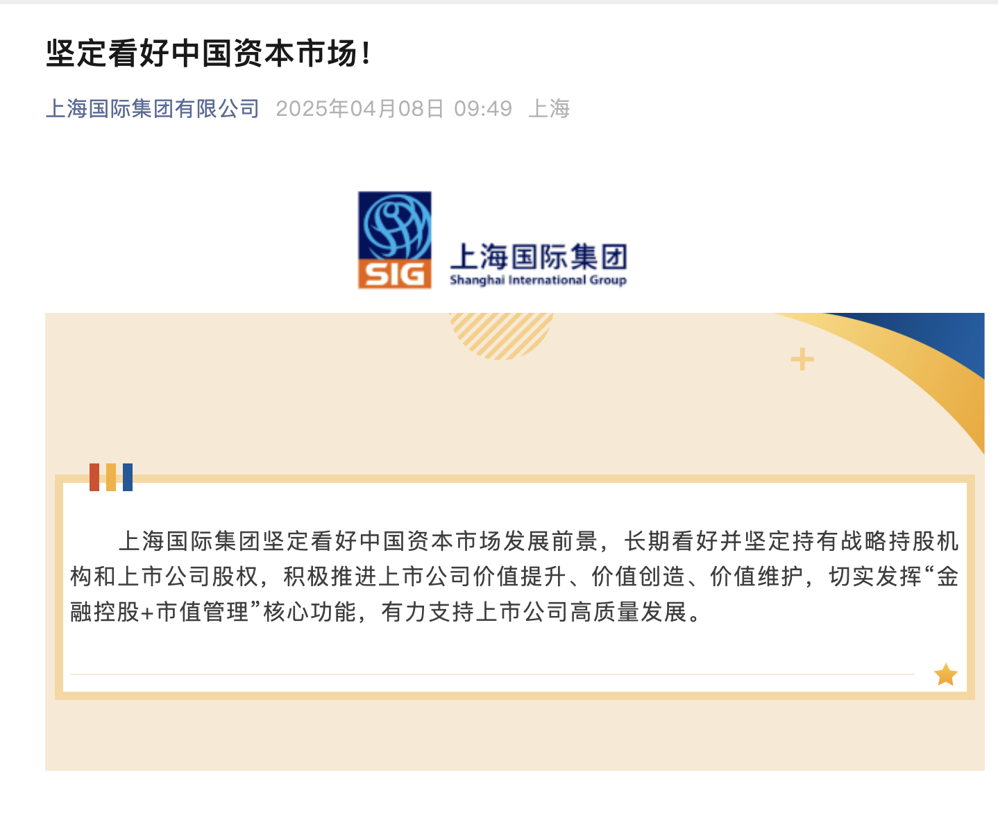 上海国资平台发声!坚定看好中国资本市场发展前景