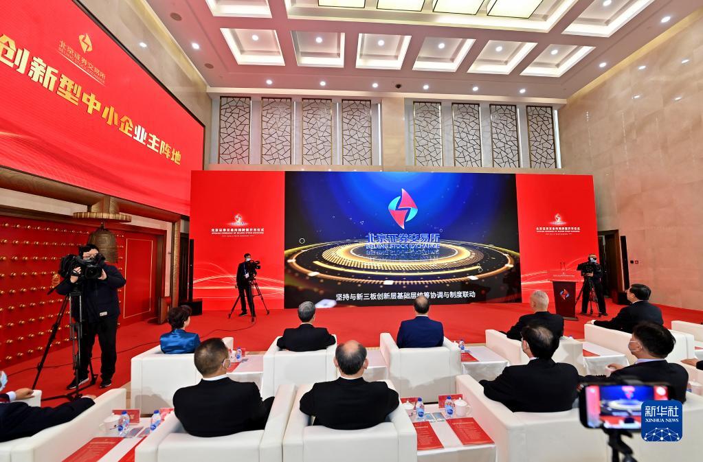 这是北京证券交易所揭牌暨开市仪式现场(11月15日摄)。新华社记者 李鑫 摄 据了解,首批上市公司共81家,涵盖25个国民经济大类行业,大部分属于行业细分领域的排头兵,充分体现了北交所服务创新型中小企业的市场定位。 “北京证券交易所揭牌开市,是我国资本市场改革发展的又一重要标志性事件。”证监会主席易会满表示,证监会将持续深化新三板改革,努力办好北京证券交易所,打造服务创新型中小企业主阵地。