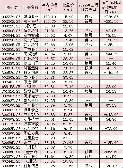 近日,中共中央、国务院印发了《数字中国建设整体布局规划》(以下简称《规划》),提出要做强做优做大数字经济。培育壮大数字经济核心产业,研究制定推动数字产业高质量发展的措施,打造具有国际竞争力的数字产业集群。推动数字技术和实体经济深度融合,在农业、工业、金融、教育、医疗、交通、能源等重点领域,加快数字技术创新应用。支持数字企业发展壮大,健全大中小企业融通创新工作机制,发挥“绿灯”投资案例引导作用,推动平台企业规范健康发展。 对此,浙江大学国际联合商学院数字经济与金融创新研究中心联席主任、研究员盘和林在接受《证券日报》记者采访时表示,顶层文件依然是方向性的,从数字经济的基础建设、数字能力、发展环境、规划统筹等方面对数字经济未来发展方向进一步细化和明确,是未来助推中国数字经济进一步发展壮大的纲领性文件。 今年以来,数字经济板块持续走强,截至2月27日,板块整体涨19.36%,跑赢上证指数(期间累计涨5.46%)。其中,72只概念股期间累计涨幅超过20%,鸿博股份、汉王科技年内股价实现翻番,期间累计涨幅分别达139.10%、106.70%,拓尔思、恒久科技、赛为智能、初灵信息、光云科技等5只概念股期间累计涨幅也均逾50%。 表:年内累计涨幅超30%的数字经济概念股